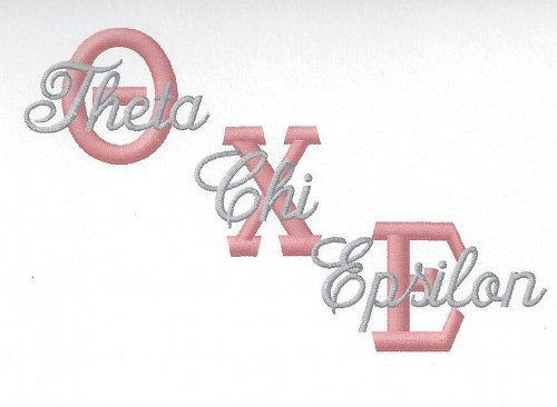 The majority of our Greek orders involve tackle twill or fabric letters that are sewn onto garments. We do have some tackle twill colors available for you to choose from here in our shop, but they are mainly solid colors and a few plaid prints. If you are looking for a specific print, it is probably best for you to bring it in yourself. We have done Greek letters from 2 inches in height up to 24 inches! We have 2 main styles available: the machine-stitched letters (these have a thick border stitching around the entire letter) and the standard-stitched letters (these have a lighter density zig-zag stitching around the letter). Our pricing is done on a per-letter basis and varies depending on the size and type of lettering you choose.